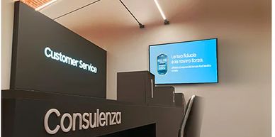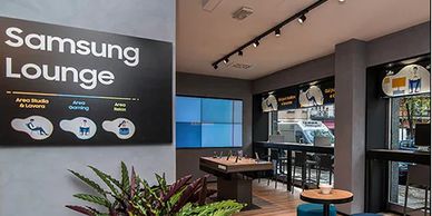 Area di attesa esperienziale con wi-fi gratuito e sedute con caricabatteria integrato, possibilità di provare gli ultimi prodotti, rilassarsi guardando serie tv o film su tablet e QLED TV.